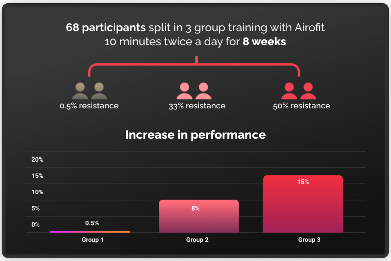 Airofit is also the only breathing trainer that goes beyond simple respiratory muscle training (RMT). We also address other aspects of breathing, like Respiratory strength, Vital capacity, Anaerobic threshold, and relaxation. We ensure that you can train harder, recover faster and most importantly - perform better.